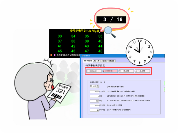 案内情報や窓⼝誘導など、表⽰するメッセージを運⽤に合わせてカスタマイズすることができます。